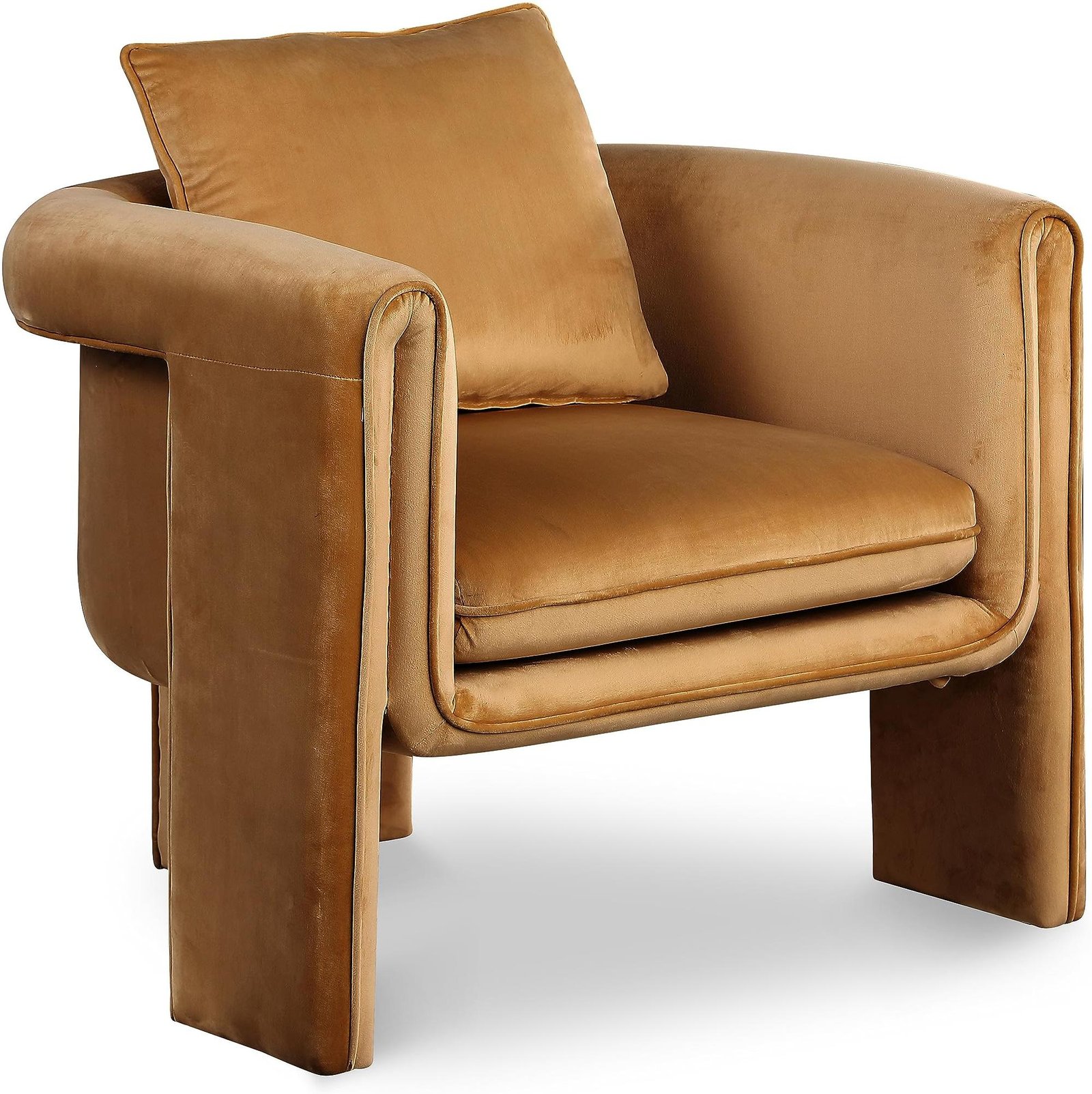 Meridian Furniture 424Saddle Sloan Collection Modern | Contemporary Velvet Upholstered Accent Chair with Soft Saddle Velvet, Curved Arms, 34.5″ W x 30″ D x 33″ H, Saddle